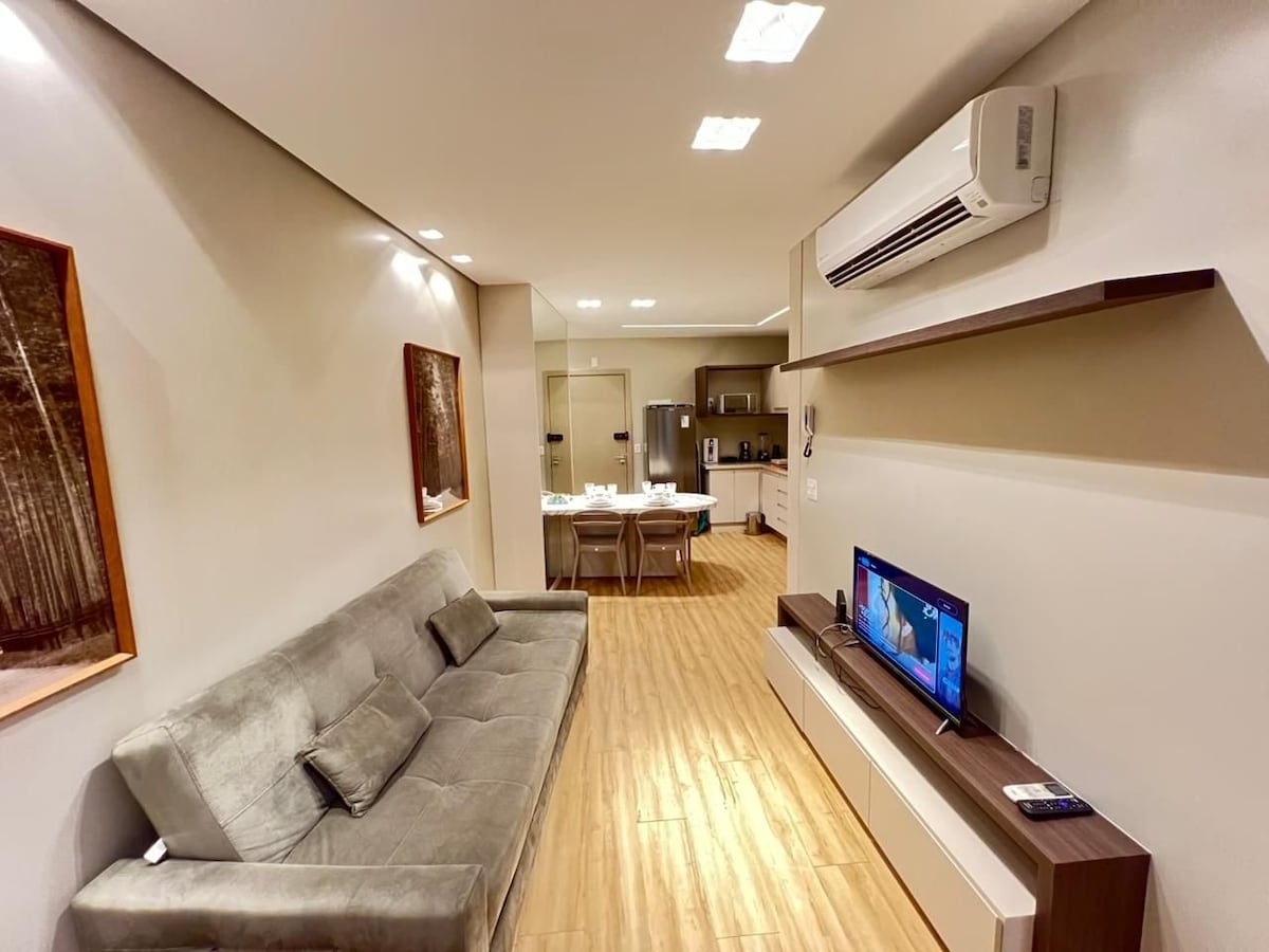 Opremljeno in udobno stanovanje v novi in sodobni stavbi, Liberty Square. Dobro se nahaja na naslovu: 📍Rua Juiz de Fora 673 S klimatsko napravo; garažni prostor; telovadnica, bazen, savna in jacuzzi na strehi stavbe. V 15 min hoje lahko pridete do: - Trgovski center Diamond -Forum Lafayette -Filarmônica - Praça da Assembleia - Nepoželeno - Bolnišnica Felício Rocho -Hospitais Mater dei, Santo Agostinho e Contorno - Bolnišnica Vera Cruz -H. São José/Medical Sciences
