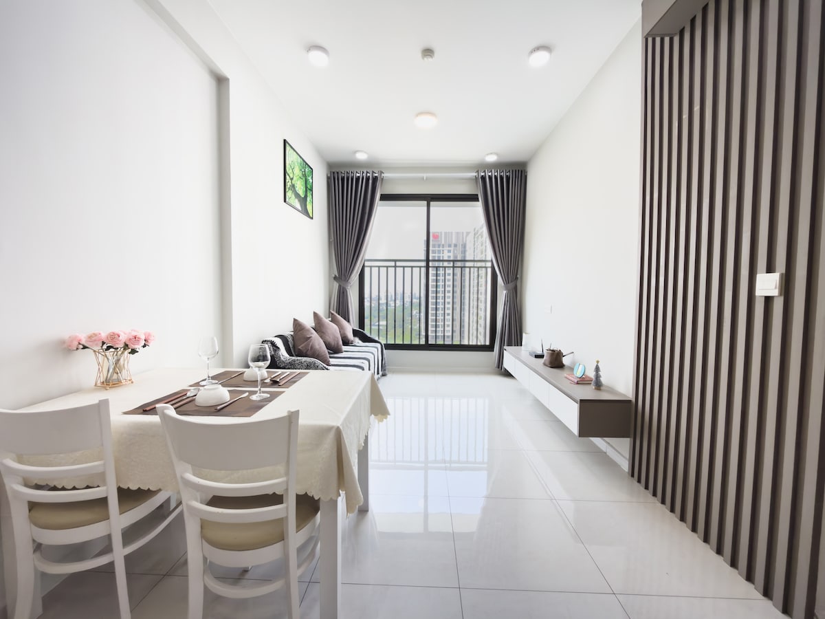 NOTE: our apartment is 1-hour drive from the city center or airport. So it may not suit your plan if you're a city first time visitor. Indulge yourself in an apartment at Masteri Centre Point, right in Vinhomes Grand Park. Enjoy the best sunset moments from the balcony, chill in the green, sweat at the gym, or just Netflix and relax on the smooth, comfortable sofa with all the necessary utilities provided. Never get bored because it's just 1-min walk from the Vincom Mega Mall.
