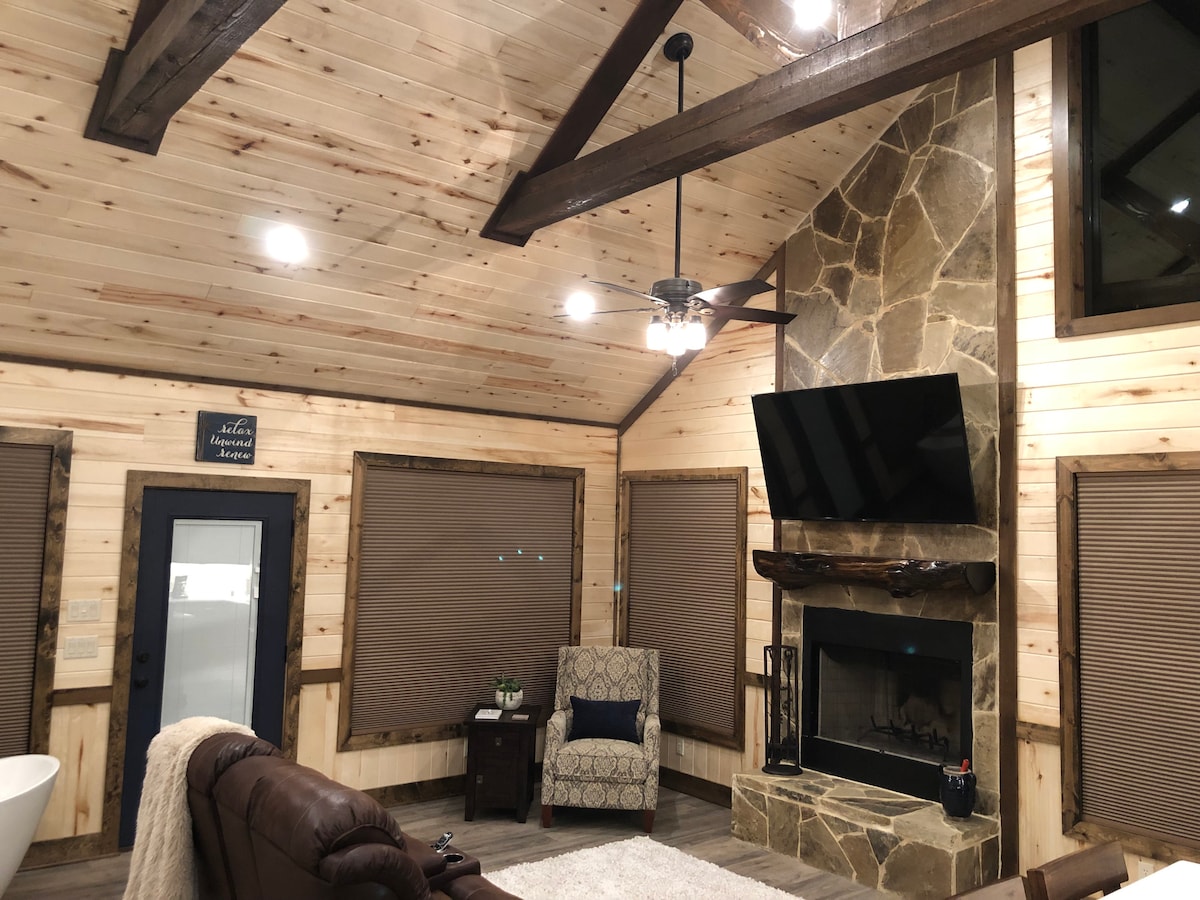 NOVA zasebna MASAŽNA KAD na veliki verandi, obdana s krošnjami dreves. Moonriver, istoimenski najljubši film Audrey Hepburn - zajtrk pri Tiffanyju . Ročno izdelan z starimi gozdovi, vključno s tlemi iz rdečega hrasta, stropom iz cedrovine in hrastovim stopniščem do predelanega stanovanja BR z veliko ZAKONSKO POSTELJO in sprehodom z mačkami za slikovit razgled. Kuhinja z granitnim pultom in napravami, udoben dnevni prostor z raztegljivim kavčem, kopalnica z WC-jem. Uživajte v OGNJIŠČU in ŽARU PVT ter dostopu do jezera Palestine po sprehajalnih poteh. Popoln romantični oddih!