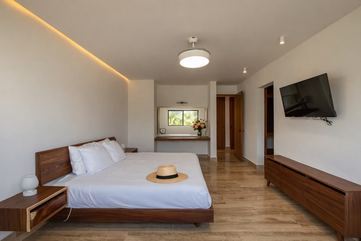 Uživajte v elegantnem doživetju v tem bivališču v središču mesta. Resnično neverjetna lokacija, 5 minut vožnje stran od plaže, vendar v osrčju Cancuna, kjer je vse, kar potrebujete, v bližini peš. Tukaj vam ni treba najeti avtomobila! Zasnovana z veliko pozornosti in neskončnimi nočitvami razmišljajo o tem, kaj vse iščemo po dnevu - hiter internet, močno klimatsko napravo, udobne postelje, odličen pritisk prhe,dovolj prostora za sproščanje in popolnoma opremljeno kuhinjo.