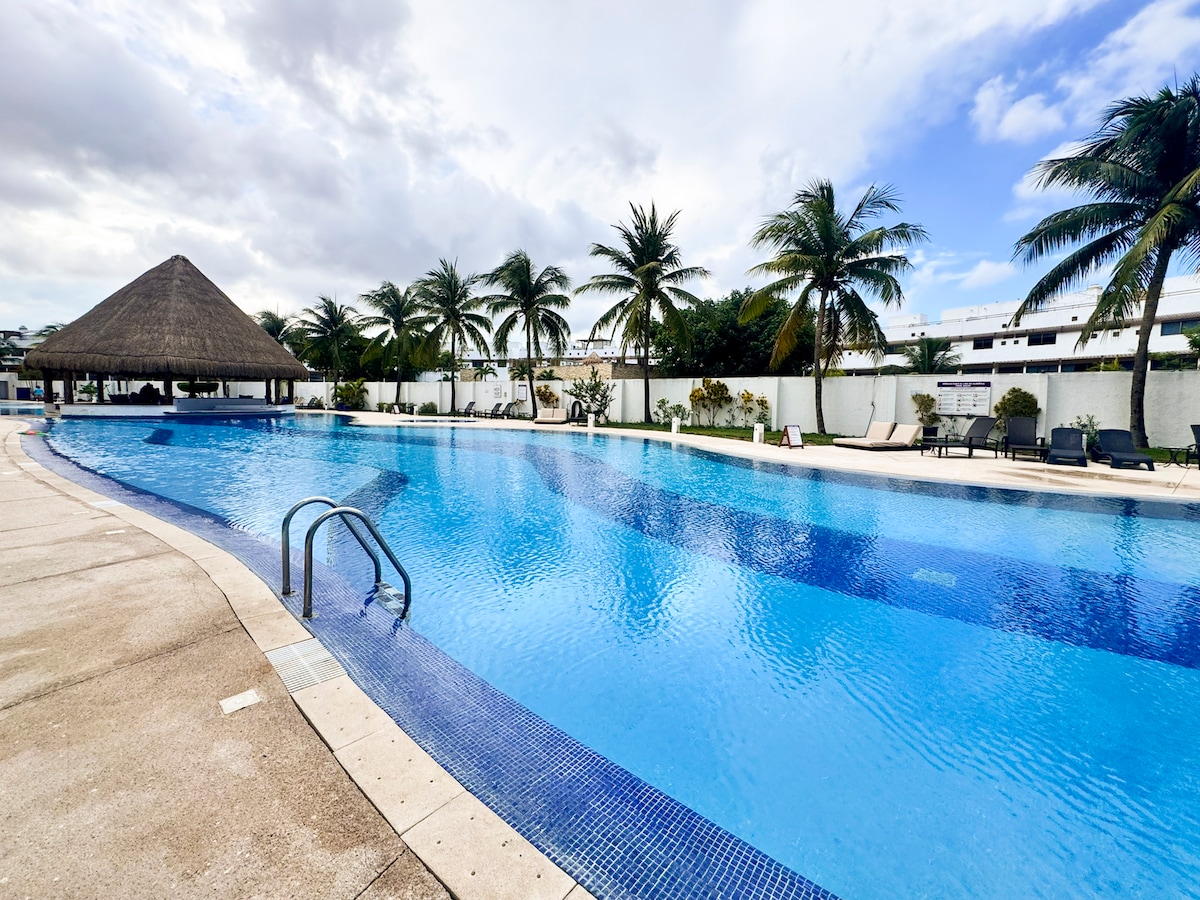 Enjoy Cancún from this comfortable and functional apartment, perfect for relaxing or working remotely. • Air conditioning in all areas • WiFi and Netflix included • Condominium swimming pool • Strategic location next to Plazas Outlet • 10-minute walk to Walmart and supermarkets • 15 minutes by public transport to the Hotel Zone and beaches • Condominium with elevator and easy access 🚍 Public transport nearby • 🛒 Shops within walking distance
