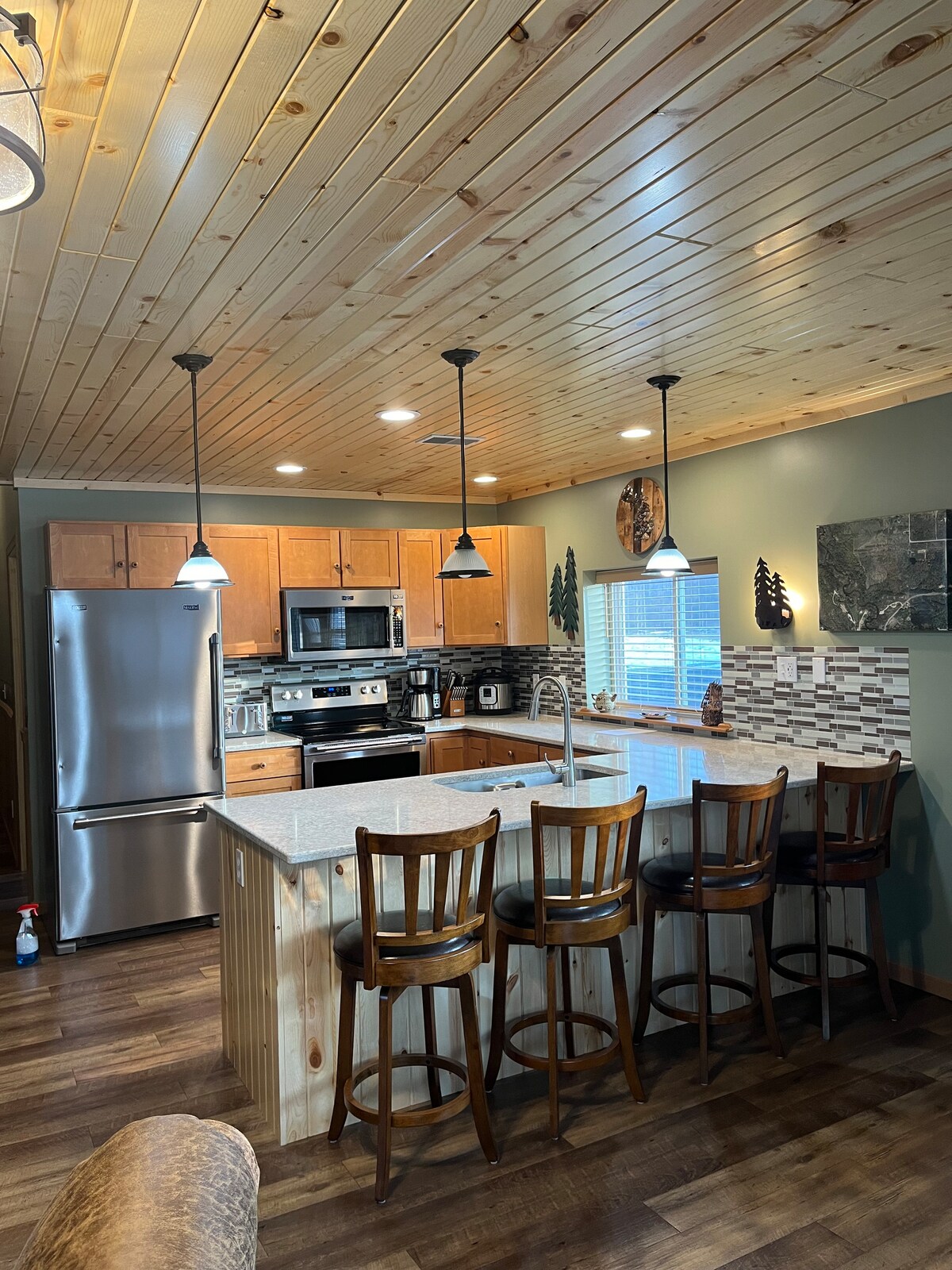 🌊 Zasebni sodobni planinski dom ob jezeru 🧘 Savna za 6 oseb v sodu za sprostitev Veslanje 🚤 na deski in kajaki so vključeni 🔥 Udoben bivalni prostor s kaminom in biljardno mizo 📍 15 min do spalnega medveda, 20 do TC Prirejamo idealno izkušnjo za goste, ki jih prirejajo prenočišča s hrano za goste. Uživajte v sezonskih kajakih in deskah za veslanje (maj-september) ter udobnih prostorih za sprostitev znotraj in zunaj. Idealno za družine, prijatelje ali hišne ljubljenčke, da se sprostijo in ustvarijo spomine.