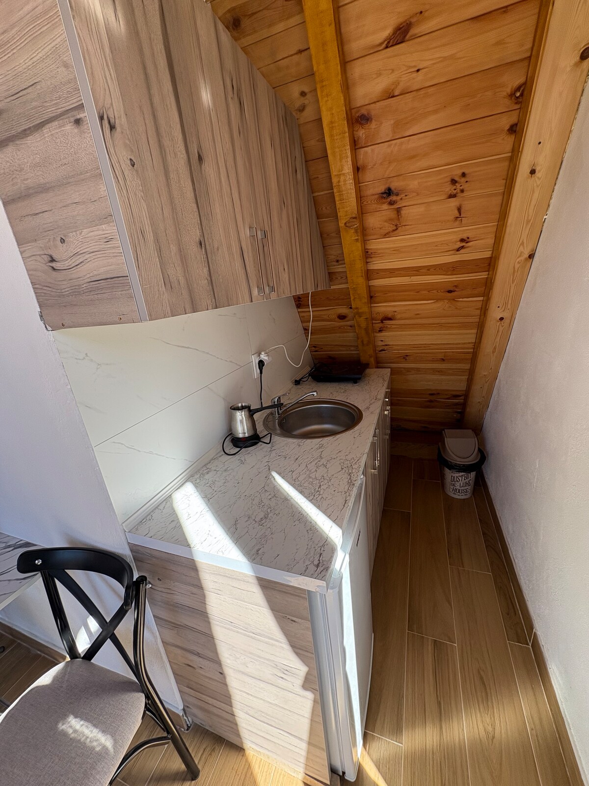 Ta lesena koča stoji na vrhu naše namestitve. S tega bivališča imate najboljši razgled. Na vseh straneh hiše lahko najbolje vidite gore. Ko pogledate fotografije, lahko vidite, da je dvoposteljna postelja na voljo samo z majhnimi stopnicami ali pa lahko spite na kavču spodaj. Na voljo je prostor, kjer lahko pripravite ogenj in večerjate na žaru. V terasah vam bomo vsak dan postregli zajtrk od 1. oktobra do 1. oktobra.