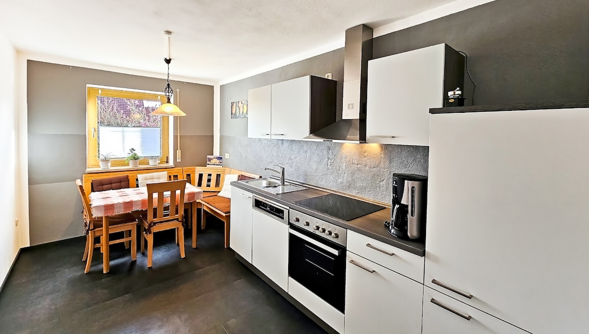 Dobrodošli v našem elegantno opremljenem počitniškem stanovanju »Rosa« v osrčju zgornjega Palatinatskega Jurasa. Stanovanje s površino 60 m2 ima svetlo dnevno sobo z raztegljivim kavčem, popolnoma opremljeno kuhinjo, prostorno kopalnico in spalnico z zakonsko posteljo. Veliko dvorišče in terasa, obdana s cvetličnimi gredicami in zeliščnim vrtom, vas vabita, da se sprostite in zadržite. Doline Zgornje Palatinatske Jure ter okoliška mesta in gradovi ponujajo odlične izletniške destinacije.