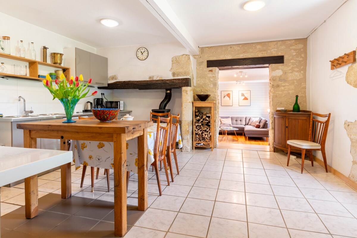 Dobrodošli v naši družinski hiški na deželi, ki se nahaja v majhni vasici na plinskem balkonu. Ta 80 m2 velika hiška, ki meji na naš dom, je bila pravkar popolnoma prenovljena in zasnovana tako, da lahko gostje z spokojnostjo uživajo v čudoviti raznobarvni in hriboviti pokrajini. Ta nastanitev je opremljena z vsem sodobnim udobjem in neposredno gleda na zasebni park, kar vam omogoča, da se sprostite v pravo zelenem okolju. Brezplačno parkiranje v bližini gitea in dostopa je neodvisno.