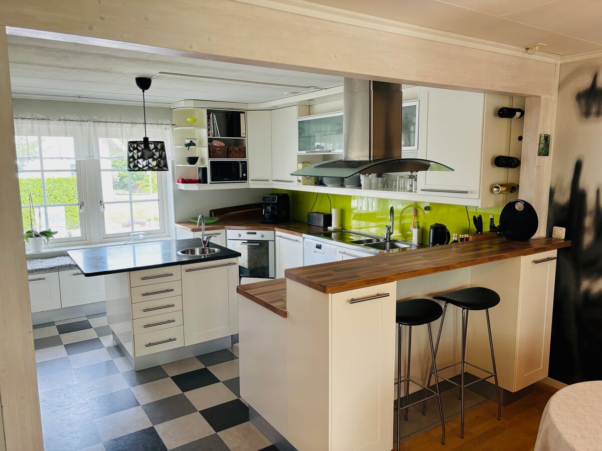 Sprostite se v tem edinstvenem in mirnem prostoru. Le 10 minut vožnje od središča mesta. Hiša je velika približno 65 m2 in na novo zgrajena, vendar v pristnem podeželskem slogu. Tukaj boste našli popolnoma opremljeno kuhinjo z večino stvari, ki jih potrebujete. Majhna, vendar pametna kopalnica s straniščem in prho. Pralnica s sušilnim strojem. Prostorna dvoposteljna soba in zakonska postelja v TV sobi. Tukaj živite z gozdom tik za vogalom in dvema naravnima rezervatama z več pohodniškimi potmi in ptičjimi jezeri v bližini. Enodnevne nočitve na zahtevo poleti.