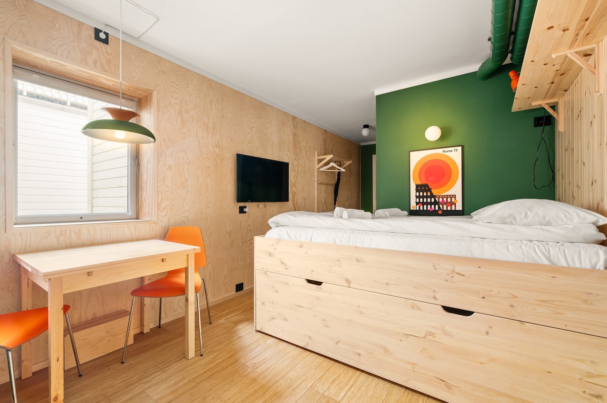 Simple & enjoyable 1BR apartment in the heart of Bergen! Enjoy a mix of modern & old in this authentic Bergen house, and wake up in the beautiful Nordnes peninsula, a quiet, peaceful & historical part of town. The original wooden floor and walls from 1900 provides x-factor, alongside with the newly refurbished bathroom. Only a 3 min. walk to Torgallmenningen, and 5 min. to the Bergen Light Rail, that'll take you to and from airport in easy fashion. Fast fiberoptic wifi for those working remote!