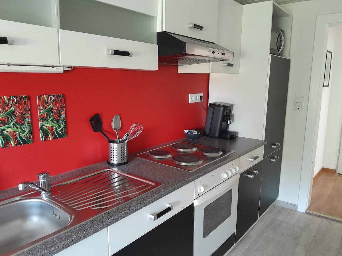 Počitniško stanovanje v gozdu v Waldbrölu - v bližini središča in idiličnega - pohodništvo, kolesarjenje, uživanje - z pravljičnim gozdom na vrtu za najmlajše in gozdnim botaničnim vrtom za velike. Stanovanje se nahaja v kleti dvodružinske hiše z neposrednim dostopom do vrta. Kuhinjska dnevna soba s teraso, spalnica in prostorna dnevna soba s čudovitim razgledom.