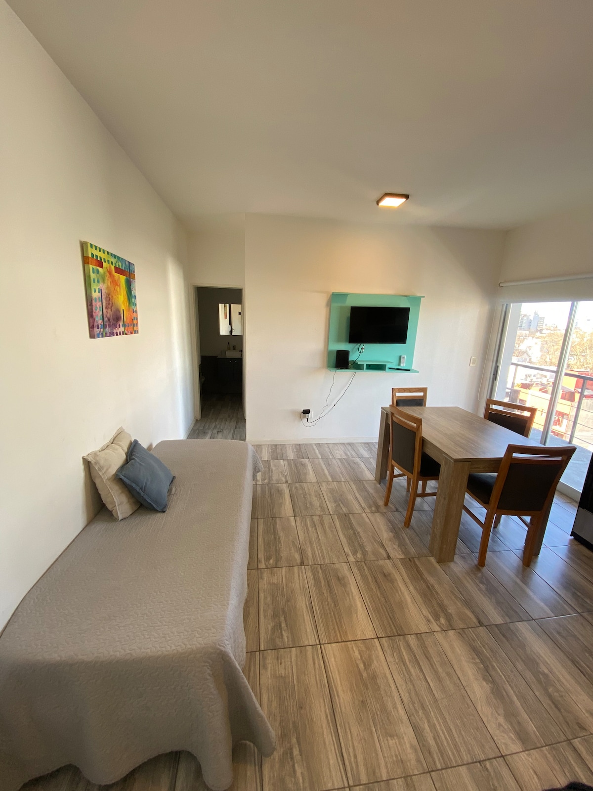 Ima spalnico z zakonsko posteljo, raztegljiv kavč v dnevni sobi, kopalnico in balkon s čudovitim razgledom na drevo. Prostor ponuja: Hiter Wi-Fi, TV, klimatska naprava in ogrevanje Vključena je opremljena kuhinja in posteljnina Sodoben slog z novim pohištvom in pisanimi detajli Vrhunska lokacija: 4 ulice od središča 12. ulice Nekaj minut od trga Plaza Moreno in Plaza Rocha Blizu otroške bolnišnice in glavnih znamenitosti mesta