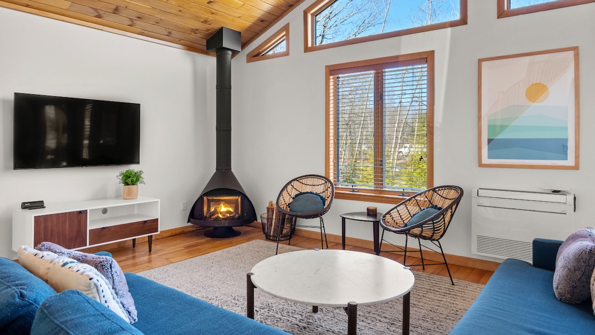 Pobegnite v svoje sodobno gorsko zatočišče – kot nalašč za pomladne oddihe! Le 15 minut do muzejev Tanglewood, MASS MoCA in The Clark ter v bližini slikovitih pohodniških poti, slapov, kmečkih stojnic, pivovarn in očarljivih majhnih mest. Uživajte v masažni kadi na lesno kurjavo, preživljajte večere ob kurišču Breeo, pripravljajte sveže sezonske obroke in se sprostite v mirni zasebnosti. Z možnostjo polnjenja električnih vozil in tihim delovnim prostorom je idealno bivališče za oddih ali spomladanske pustolovščine.