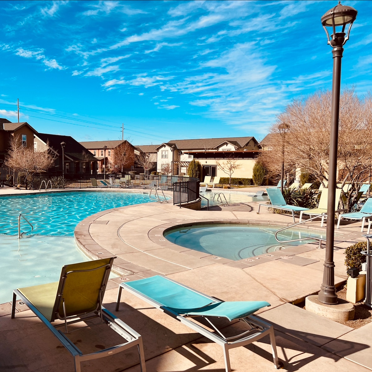 Ugodno bivanje v letovišču, ki živi v zasebnem, profesionalno zasnovanem prostoru z lastno kopalnico. Nepremagljiva vrednost v edinstveni, ograjeni skupnosti z razkošno opremo - čudovit dvostopenjski bazen, savna, telovadnica, odbojkarsko igrišče, zunanja žar postaja in klubska hiša s pisarniškim prostorom. Priročno se nahaja v bližini vsega, kar ponuja Albuquerque! Minute od letališča, središča mesta in starega mestnega jedra ter številnih drugih lokalnih in nacionalnih favoritov. Kot nalašč za krajša ali daljša bivanja. Vsi popotniki so dobrodošli!