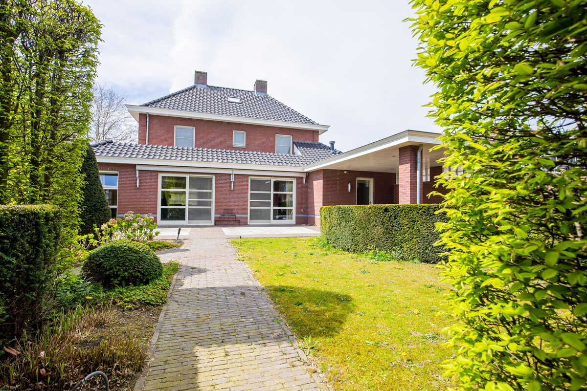 To je lahka in prostorna 3-sobna hiša (110 m2) z dvema dodatnima posteljama na podstrešju. Hiša z vrtom se nahaja v mirnem in zelenem prostoru. Nakupovalni center je oddaljen 4 min hoje od hiše. Pred hišo je dovolj brezplačnega parkiranja. Na voljo je dobro opremljena kuhinja. Brisače in posteljnina so vključeni. Del zneska rezervacije bo porabljen za projekte, ki ščitijo naravo in rojstno življenje.