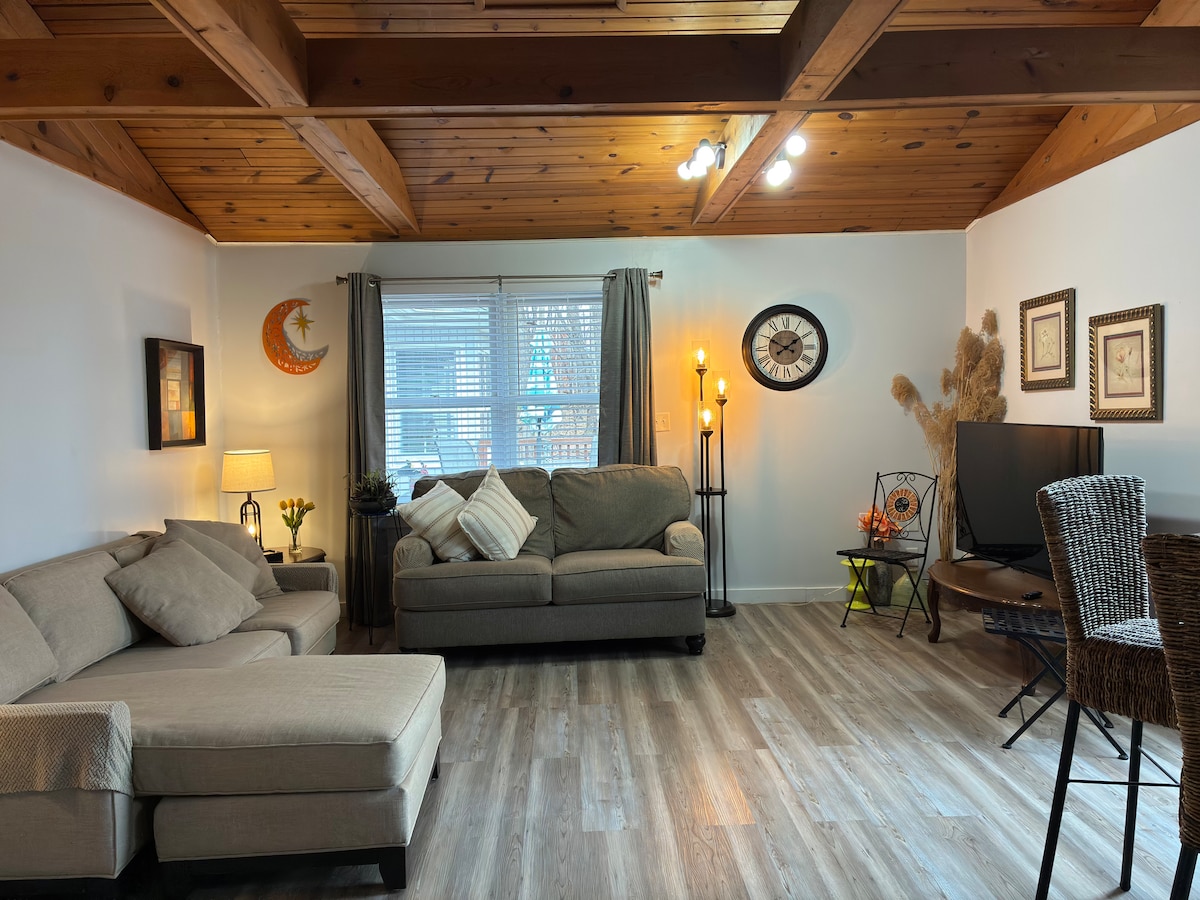 Feel relaxed, refreshed, & recharged! Our home is the perfect blend of comfort & cottage charm!Home is 2450 sq. ft., 3 bdrm,3 bth (2 BR, 2 BA in main home),updated & features a full kitchen, laundry room,6 TV’s,WiFi, & 2 eating areas.Attached guest apt. has 1 bdrm,1 bth upstairs w/ full kitchen,w/d,king bed, kids cubby w/ queen size gel mattress, & 2 TV’s.Guest apt. is attached & is perfect for people in your party requiring privacy!Close to everything but “socially distanced” in Lakeside!