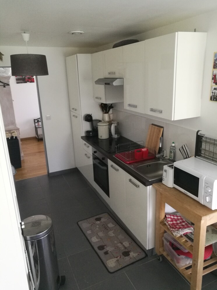 Naast onze boerderij ligt de kleine gîte aan een doodlopend weggetje. De oude schuur werd door ons omgetoverd tot een zelfstandige studio met alle voorzieningen (incl. zonnepanelen) voor een onbezorgde vakantie; open ruimte met keuken, zithoek, Queensize bed en badkamer. Voor de gîte ligt het overdekte privé-terrasje met hekwerk, zodat honden veilig los kunnen. In een apart stukje tuin ligt het zwembad, waar onze gasten gebruik van kunnen maken. Geschikt voor 2 personen. Huisdieren zijn welkom.