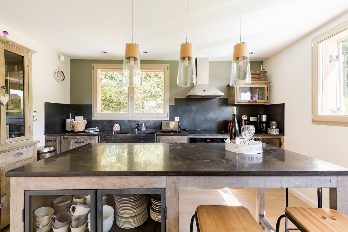 Zelo lepa hiša, ki se nahaja na veliki parceli 20 arov na robu gozda na višinah vasi z osupljivimi in tihimi razgledi. Ta nastanitev ima veliko dnevno sobo s popolnoma opremljeno odprto kuhinjo, 3 spalnice (2 enojni postelji, velika zakonska postelja in velika zakonska postelja). Na voljo sta 2 otroški posteljici. Hiša se odpira na veliko teraso s pokritim delom za jedilnico. Ima tudi garažo s polnilno postajo za avtomobile.