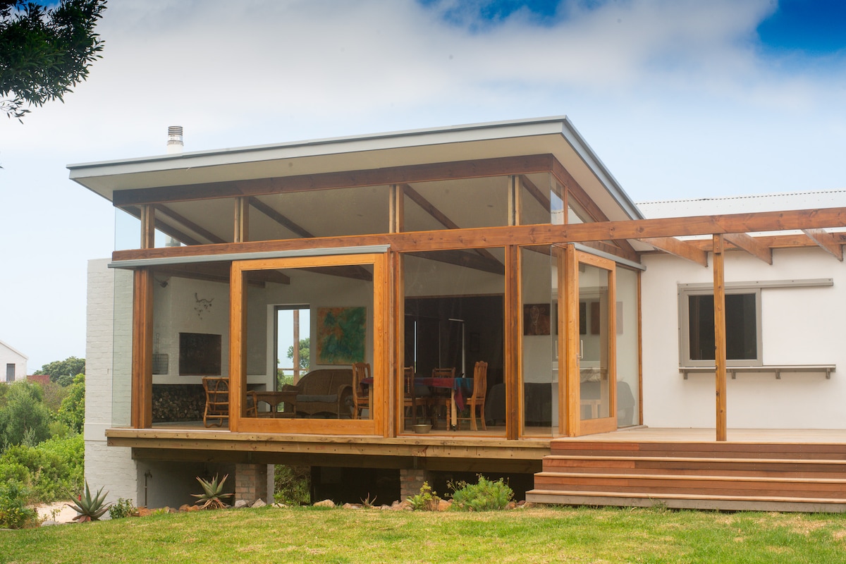 Nestled among trees and surrounded by the beauty of Betty’s Bay, Swallow’s Perch is the perfect getaway for nature lovers, beachgoers, and wine enthusiasts. Solar and battery backup ensure power during outages. Just a two min walk to Silver Sands Beach, this light-filled home offers tranquility, a big garden, outdoor space, a cozy fireplace, and a separate garden cottage. Centrally located near Hermanus and Stellenbosch wine routes, it’s a pet-friendly retreat for adventure and memories.
