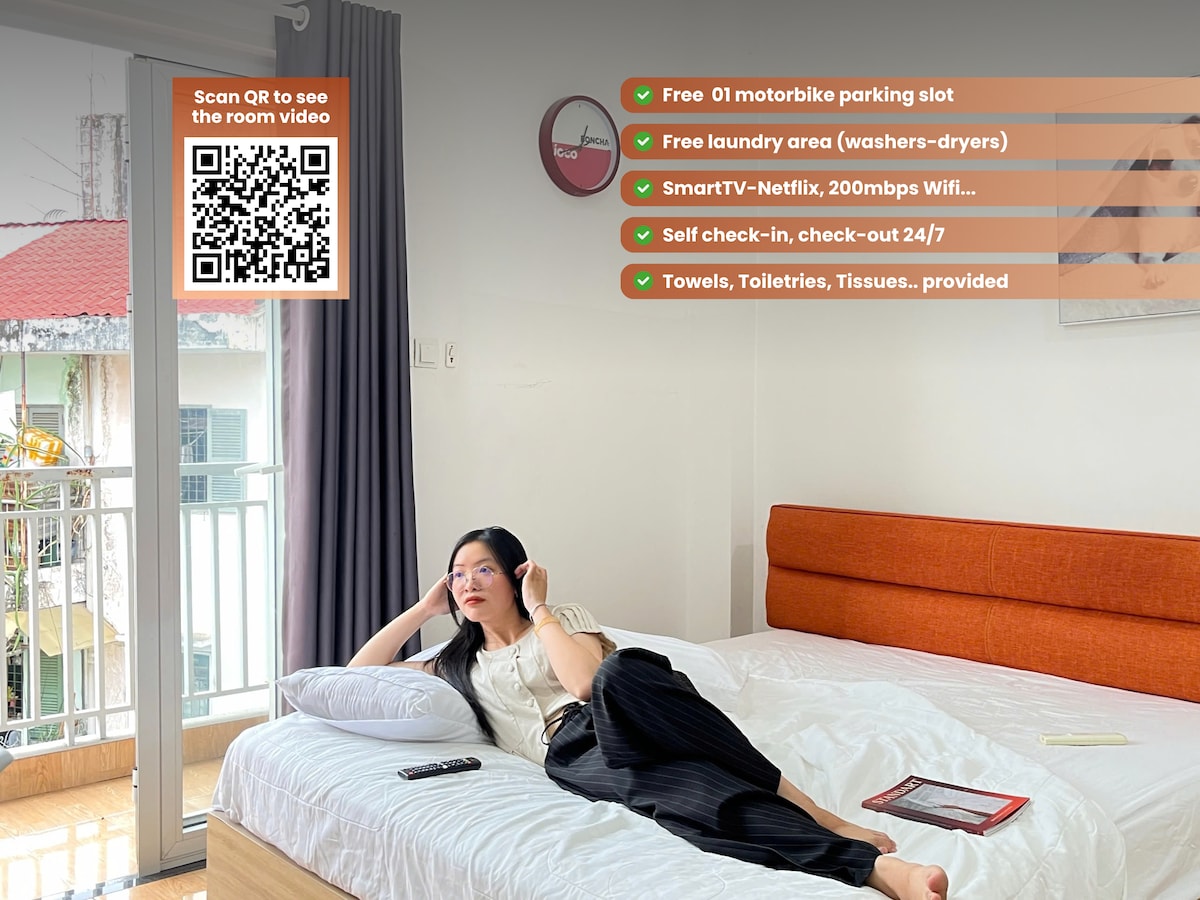 • Spalnice – vsaka soba je zasnovana za udobje in ima plišasto posteljnino • Popolnoma opremljena kuhinja – z lahkoto pripravite domače jedi. • Brezplačen prigrizek in pijača dobrodošlice • Hitri Wi-Fi in 65-palčnipametni televizor • Lokacija – popolna lokacija, le 5 minut hoje od postaje MRT. Od glavnih znamenitosti, kot so tržnica Ben Thanh, ulica Bui Vien in glavna nakupovalna središča, vas loči le 7-15 minut. Sprostite se v razkošju in uživajte v udobnem in elegantnem bivanju v središču mesta.