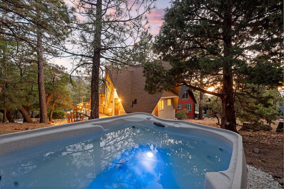 Balsam Bungalow je slikovit bungalov iz sredine stoletja, ki se nahaja na borovem pobočju, s pogledom na državni gozd in jezero. Nastanitev se nahaja v ekskluzivni in očarljivi soseski Moonridge, sprehod/vožnja do smučišč Big Bear, ki je oddaljen 0,3 milje. Snow Summit 9 min vožnje. Pohodniške poti State Forest so 2 ulici stran. Udobno se namestite ob zidarskem kaminu in uživajte v slikovitem razgledu pred stropom do talnih oken. Uživajte na gozdnatem dvorišču s teraso, ognjiščem, žarom, jedilnico in slikovito masažno kadjo.