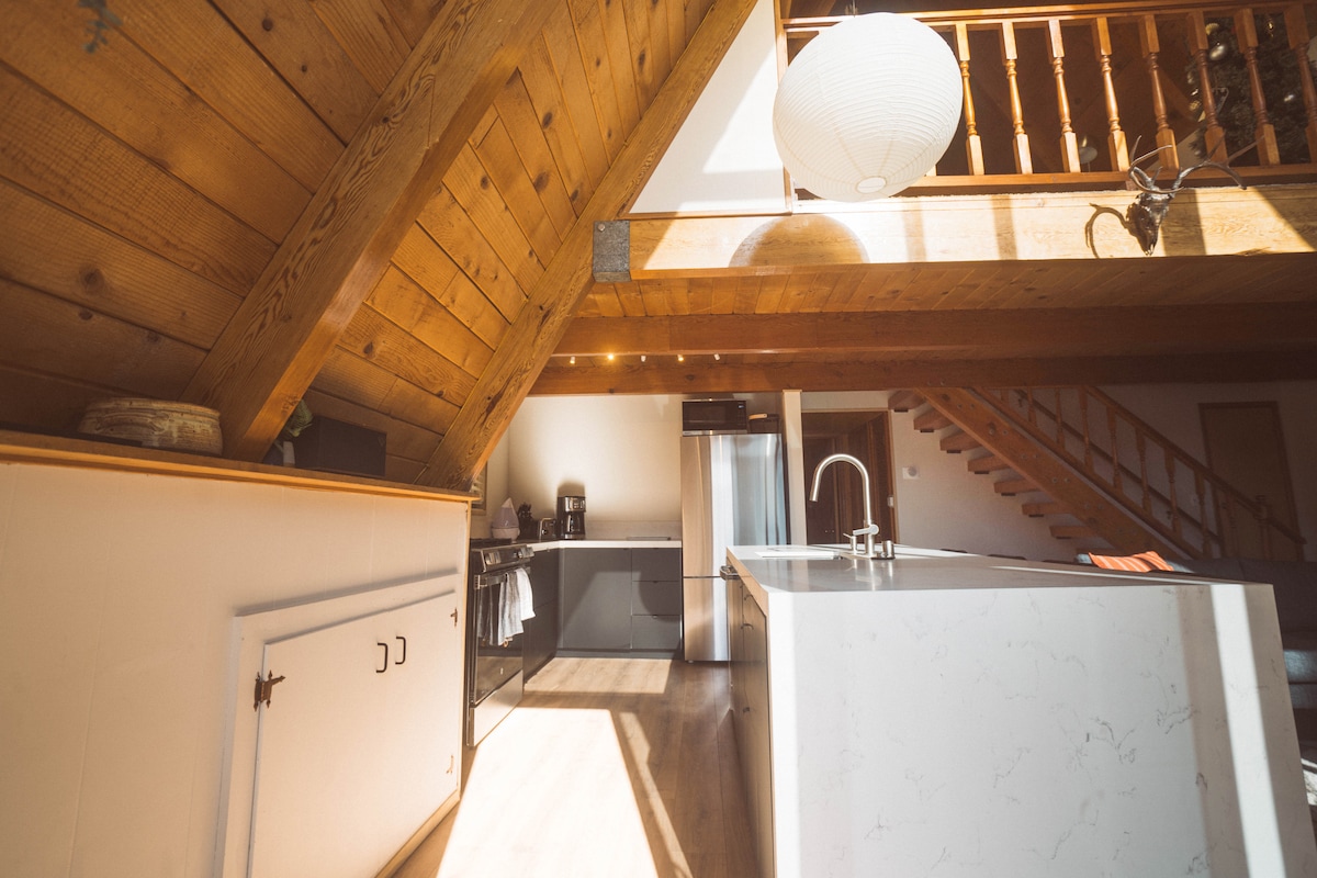SAVE - GREAT OLYMPIC ROWING RATES Picture-Perfect $0 Pet Fees Squeaky Clean Woodsy Alpine Modern AC Cabin 4-Person Spa Garage 2-Bed 1-Bath Fireplace White Shiplap Knotty Pine New KITCHEN New APPLIANCES New BATH Fire Pit On Deck Great Neighborhood -- Close In Location Easy Village and Lake Access Great Furnishings, Decor, Artwork, Comfy Beds, WiFi, Hulu TV, Gas Grill, Washer, Dryer PUP-FRIENDLY, FREE EV CHARGE. King in Primary; Queen in Guest. 21 tall pines on property. Night landscape lighting.