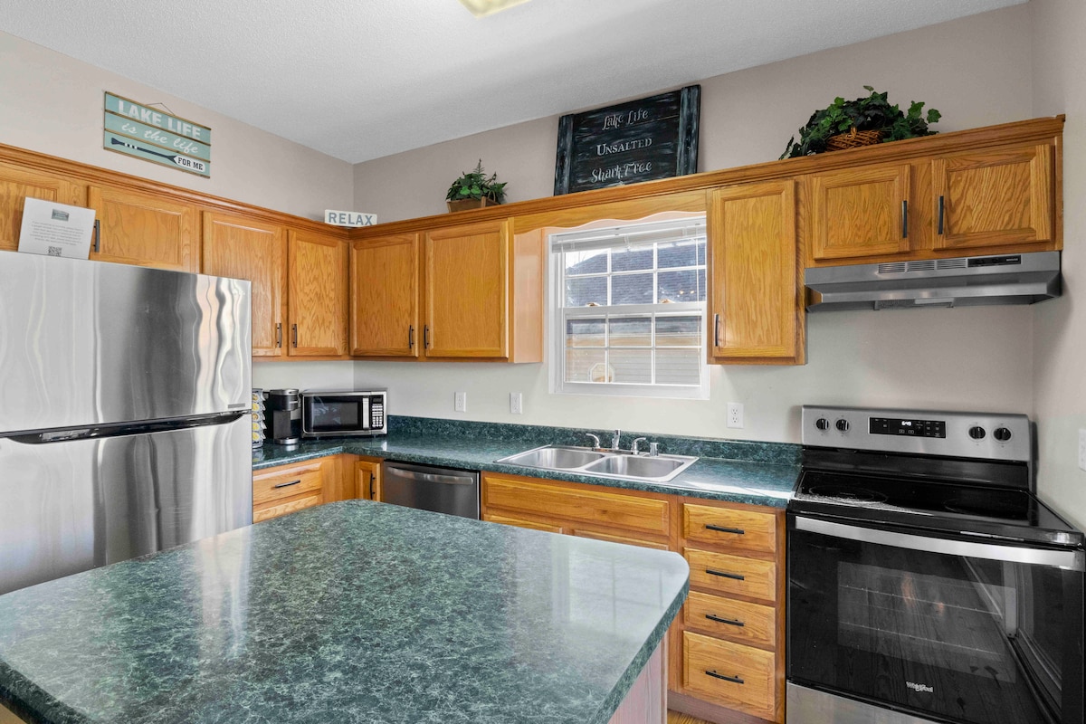 Vaša družina bo blizu vsega, ko boste bivali v tem bivališču, ki se nahaja na osrednji lokaciji. Novi krožni beton vozi dovolj velik, da lahko potegnete čoln skozi - ni vam treba umakniti! Ravna zelena površina, dovolj prostorna za parkiranje avtodoma ali čolna ali za otroke. Na stranski terasi je majhen žar na oglje, miza s 4 stoli in senčnikom. Notranjost vključuje udoben kavč v polni velikosti, miza s 4 stoli in naslonjač. Vsi televizorji so pametni televizorji! nekadilska!