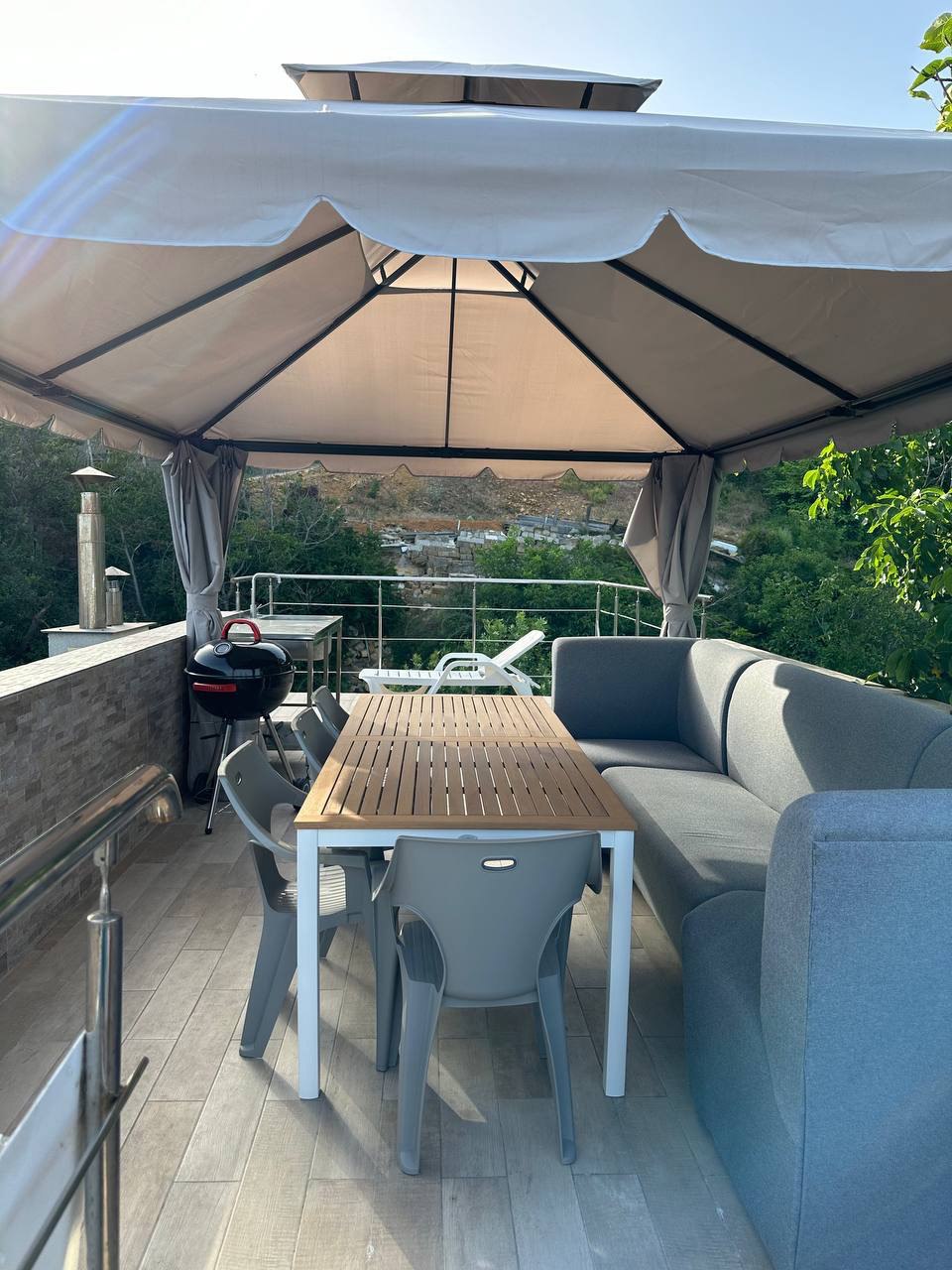Udobna samostojna hiša na parceli ob glavni hiši. Zasebno mirno dvorišče. Streha je mansardna. V mansardi je spalnica z dvema zakonskima posteljama. V pritličju sta kopalnica in kuhinja. Velika svetla okna. Hiša je topla. Topla voda je na voljo 24 ur na dan. Idealno za poletne počitnice na morju in za poslovna potovanja. Ni namenjeno za zabave.