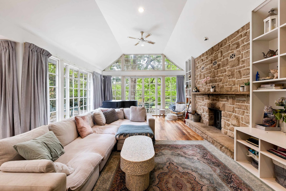 Razkošje na podeželju s pogledom na veliko mesto. Ta elegantna hiška na deželi in sončna terasa vas bosta v trenutku ponovno povezali z naravo. Bilpin je tik ob cesti z ekološkimi tržnicami, kletmi in sadovnjaki, kjer lahko sami nabirate sadje. Razgled iz globoke kopalne kadi je osupljiv, udoben kamin pa je v celoti opremljen z vsem, kar potrebujete. Udobno se namestite ob ognjišču na prostem pod odprtim nebom. Če še niste prepričani, preberite mnenja. Pred rezervacijo se pozanimajte o posebnih ponudbah med tednom!