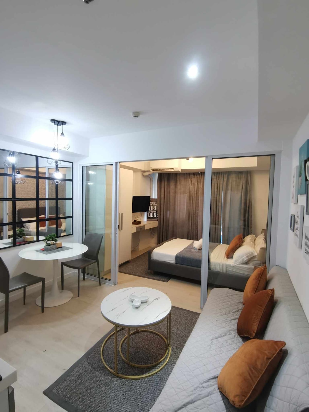 ✅ Ena najčistejših Airbnbjevih enot v Holland Parku. Sprostite se v udobnem 24 m2 velikem studiu z zakonsko posteljo (Queen), raztegljivim kavčem, hitrim Wi-Fi-jem, 50-palčnim televizorjem z Apple TV-jem (Netflix, HBO, Prime in še več) ter brezplačnim dostopom do telovadnice in bazenom (200 ₱/dan). Idealno za samostojne popotnike, pare, majhne družine ali poslovne goste. 🎁 Uživajte v čistih brisačah in kompletu za dobrodošlico (zobna ščetka, zobna pasta, milo, šampon) – naš način, da se vam zahvalimo!