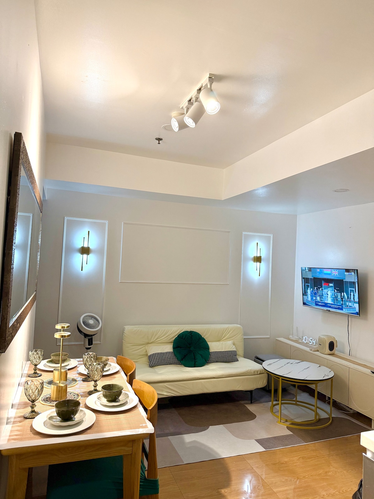 A fully-furnished studio-type/condo style unit, located in Lancaster New City. Attached to a home but you have your OWN gate, lock & privacy. Enjoy the following amenities: 👮🏻♂️Gated village w/ 24/7 guard 🛜WiFi 🖥️ TV ❄️Aircon 🚿Shower heater 🧊Refrigerator 🥘Microwave 🍚Rice cooker ☕️Electric kettle 🍛Dining table & chairs 🍽️Complete tableware 💧Water filter 🫧Personal washing machine 🛌Double deck 👕Clothes cabinet 💄Vanity table 👱♀️Hair dryer 💻Working desk