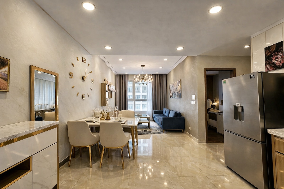 Sodobna garsonjera v soseski Lavida Plus v središču mesta Phu My Hung. Udobna zasnova s polno kuhinjo, pametno televizijo in balkonom za razgled na mesto in sproščujoče noči. Idealno za pare, ki iščejo romantično bivanje, ali popotnike, ki si želijo elegantne in udobne baze v D7. Sprehodite se do trgovskih centrov in lokalnih krajev. Rezervirajte zdaj za sproščujoč oddih v Saigonu.