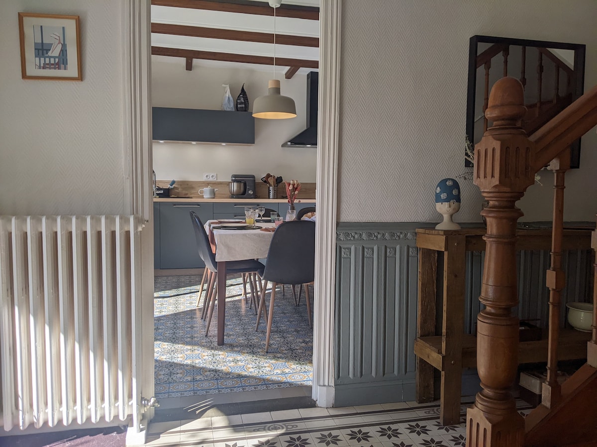 La maison a été entièrement rénovée. Elle se situe sur le plat de Binic à 300m de la plage et de tous les commerces. Tout peut se faire à pied. Rez-de-chaussée : cuisine, salon, buanderie (LL-SL), WC, cellier et garage. Demi palier, 1er et 2ème étage : 5 chambres (4 lits de 160x200 et 4 lits de 90x200), 2 salles d’eau avec WC et 1 salle de bain avec WC. La maison se loue par semaine entière sur juillet août. En dehors des périodes scolaires, possibilité de louer 3 ou 4 nuits minimum.