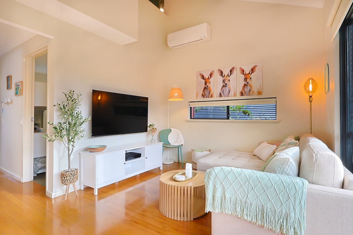 Sproščen in udoben ločen bivalni prostor z zakonsko posteljo in kopalnico s pogledom na vrtove in ognjišče. Oddaljenost od plaže 500 m, taverne Hungry Hollow 1 km in parka s prostoživečimi živalmi Bunbury 1,3 km. Gostje imajo dostop do glavnih pralnic. Na voljo je zasebni stranski dostop do bungalova z brezplačnim parkiranjem.
