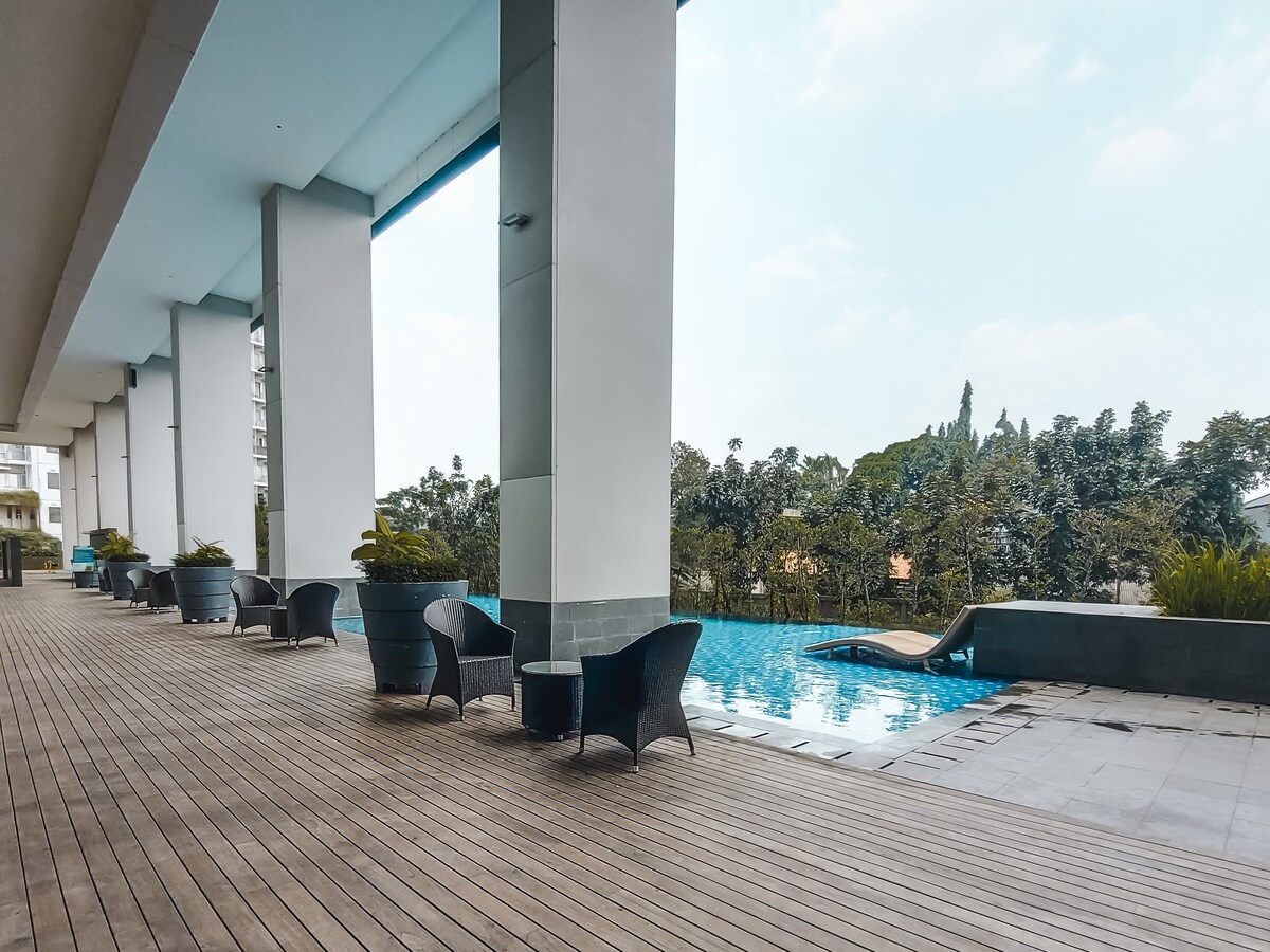 Ta priročno nameščena nastanitev ponuja najboljšo izkušnjo. Ta garsonjera se nahaja v poslovnem središču Bintaro in ponuja strateško lokacijo, udobje in užitek za bivanje in delo od doma ali v okolici. Na voljo sta tudi bazen in telovadnica. Garsonjera je nova in popolnoma opremljena. Stavba je povezana z nakupovalnim središčem Transpark Mall Bintaro. Nezakonite dejavnosti, kot so prostitucija, trgovina z ljudmi za namene spolnega izkoriščanja in trgovanje z drogami, niso dovoljene. Plačilo samo prek Airbnbja.