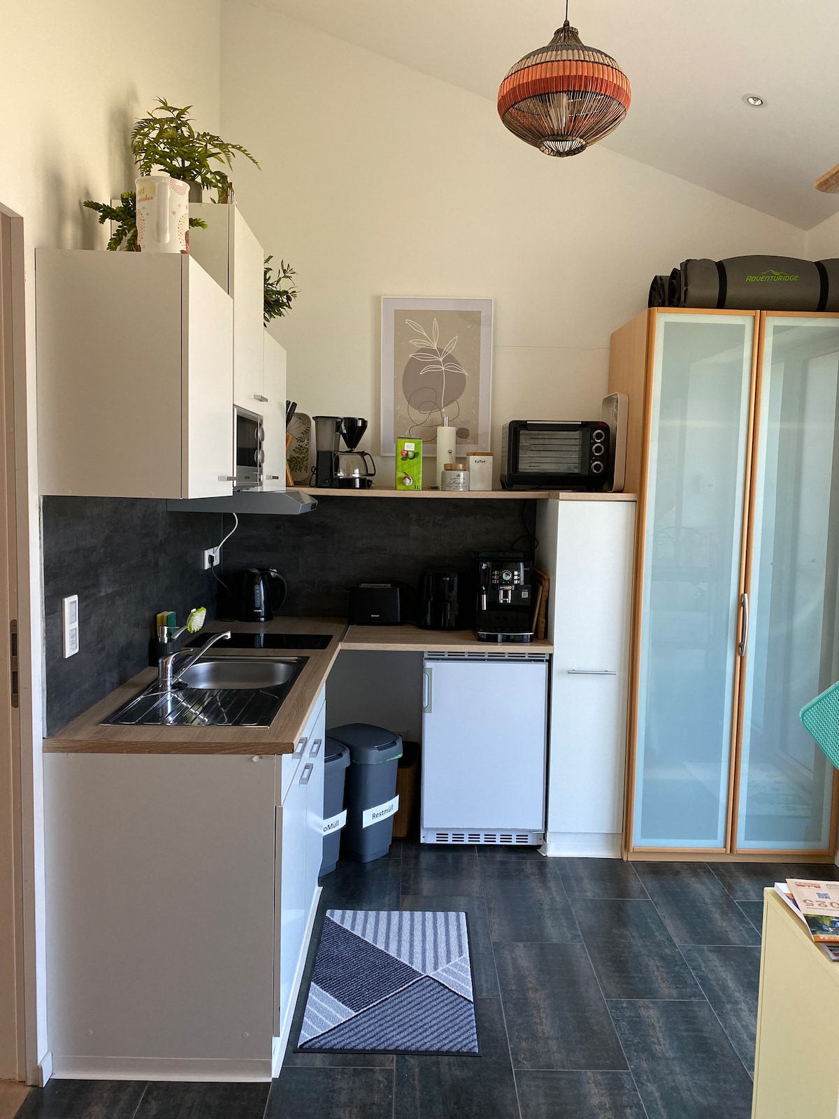 Tukaj imamo lepo enosobno stanovanje za popotnike, ki radi preživijo kratek oddih v naravi. Stanovanje meri približno 15 kvadratnih metrov in ima vse, kar potrebujete za sproščeno bivanje. V dnevni sobi je majhna kuhinja in prostorna postelja. Kopalnica ima veliko deževno prho. Z nami v Hadermannhofu se lahko sprostite in uživate v miru in naravi ali pa sodelujete v vrvežu kmetije. Veselimo se srečanja z vami.