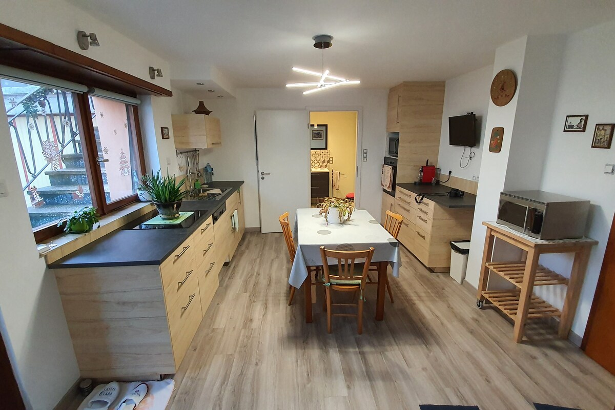 ✨️🥨 Bienvenue au Gîte des Alsaciennes 🥨✨️ Loft de charme de 70 m² climatisé dans une maison alsacienne rénovée de plus de 400 ans, transmise par l’arrière-grand-mère de Guillaume, Mamema Odile 👵🏻. 📍À quelques minutes de Strasbourg, de la Route des Vins et des plus beaux villages d’Alsace. Commerces à proximité 🥨🍷. Idéal en couple, en famille ou entre amis, vous y trouverez authenticité, confort et déco chaleureuse 🕰️🌿 💬 Une vraie parenthèse enchantée au cœur de l’Alsace.🪿✨️