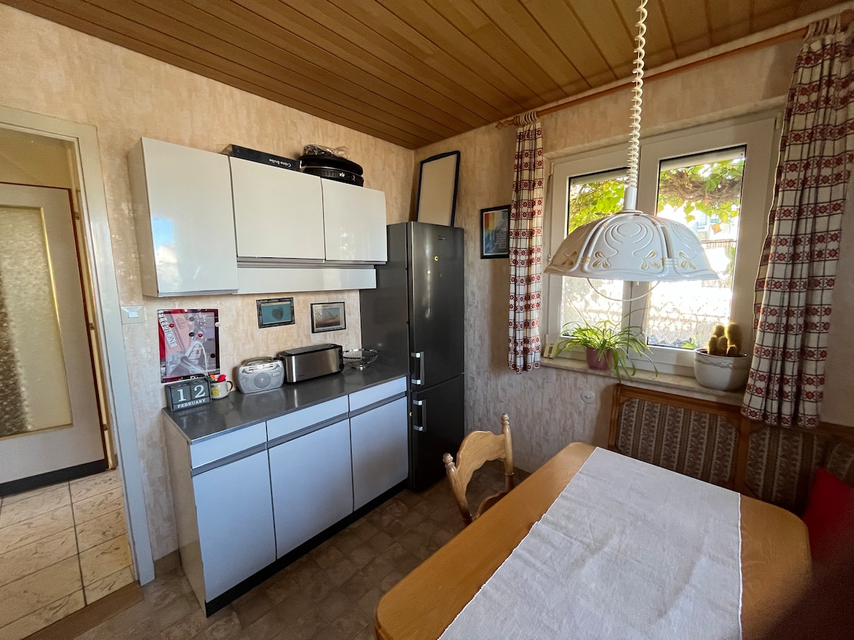 Usedite se in sprostite v tem mirnem, elegantnem prostoru. Sprostite se na zelenem obrobju hiš. Možnosti izleta na švabskem jezeru čakajo na vas. Kolesarske steze, pohodi, kolesarski park, gorske kolesarske steze, tek na smučeh itd. vas vabijo na telovadbo in zabavo na prostem. Železniška postaja je približno 10-15 minut hoje stran. Parkirišče je na voljo neposredno pred hišo. Ne glede na to, ali ste počitnik ali poslovni popotnik, ste zelo dobrodošli!