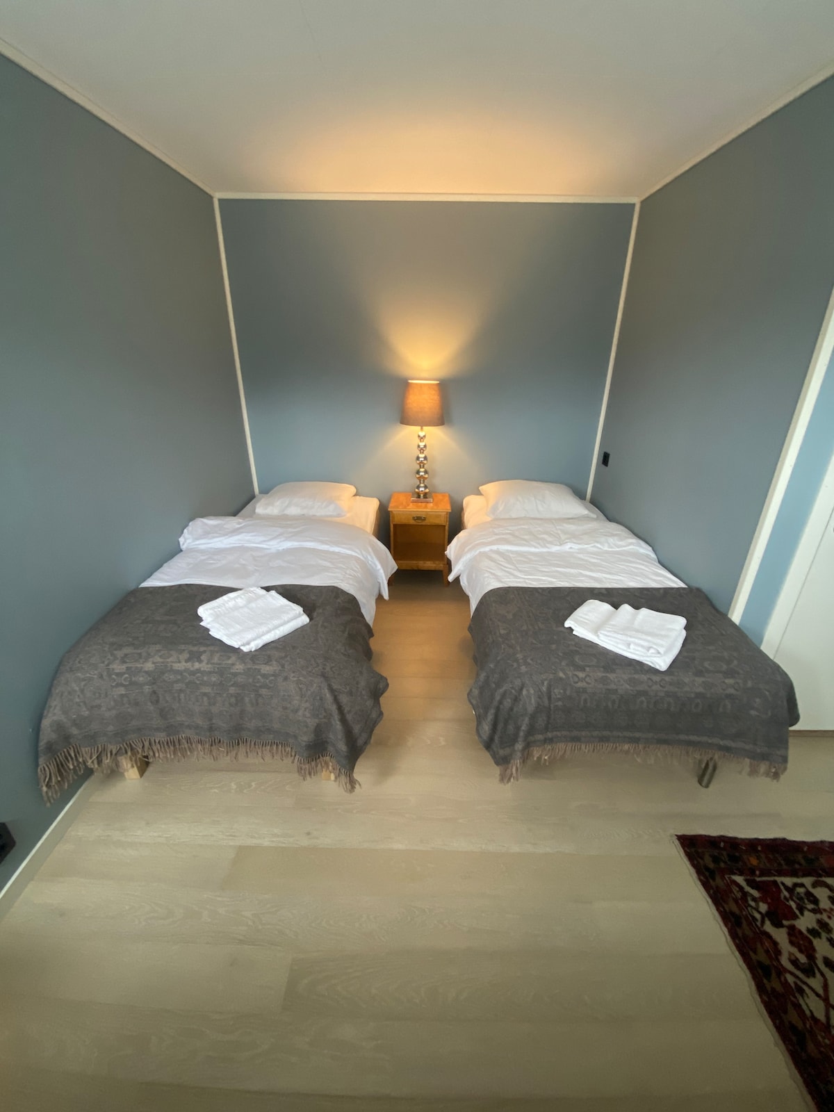 Udobna, lepa in prostorna družinska hiša. 7 min od letališča! 5 min do velikega nakupovalnega središča (Lagunen) in peš do vlaka do mesta ali letališča. Brezplačno parkiranje, električni avtomobili se lahko zaračunajo tudi zunaj hiše. 3 baloni. 5 spalnic, 2 kopalnici. Velika, prostorna dnevna soba in kuhinja. Igrišče za otroke zunaj. Obkrožena s čudovitimi gorami in naravo. Dobrodošli v mojem čudovitem mestu:-)