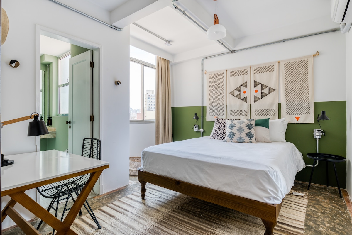 Odkrijte našo40m2 veliko suito v osrčju São Paula! Z udobno masažno kadjo za sprostitev ponuja udobje in slog le 400 metrov od postaje podzemne železnice República. Idealno za tiste, ki iščejo praktičnost in pridih razkošja v mestu. Ustvarite nepozabne spomine! Zajtrk vključuje: Kava, mleko, pomarančni sok Pratz, 2 sirna kruha, 2 mini mlečna kruha, 2 mini zvitka ciabatta, 2 sladki kokosovi rozete, mozzarella, puranje prsi, maslo, kremni sir in marmelada.
