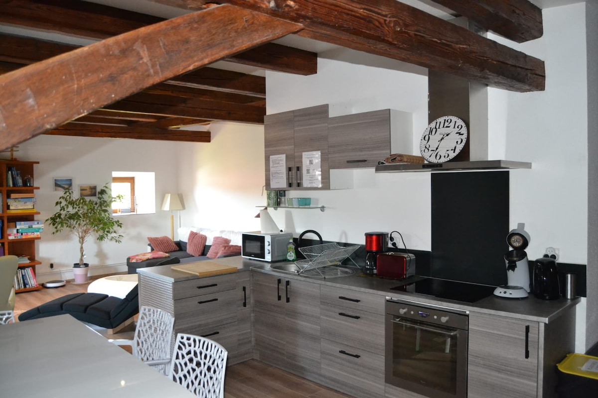 Bivanje v miru in tišini ... Nahaja se v Ungersheimu, vasi v ekološki tranziciji, ki se nahaja v osrčju Alzacije, uživajte v skednju, ki je značilen za popolnoma prenovljeno devetnajsto stoletje, ki združuje sodobnost in pristnost. Z 8 osebami, ki so v celoti privatizirane, z zaprtim parkiriščem lahko združite turizem in sprostitev s pomočjo zdraviliškega območja in savne.