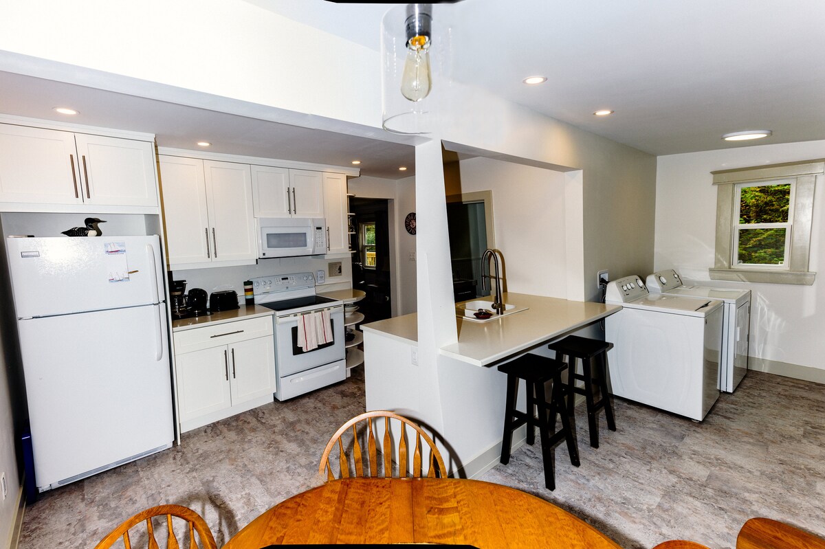 Pobegnite v očarljivo, edinstveno naravno zatočišče BREZ STROŠKOV ČIŠČENJA. Bivali boste v zasebnem apartmaju v našem domu z ločenim vhodom, zvočno izoliranim stropom, zakonsko posteljo, kopalnico, kuhinjsko nišo in klimatsko napravo, ki se ponaša z osupljivim razgledom na plimsko jezero. Sprostite se v zasebni masažni kadi in mirnem okolju. Ponuja umetno plažo, teraso ob vodi z žarom in kuriščem. V bližini organizacije Rails to Trails in skoraj 7 plaž. Pralnica je oddaljena 7 minut. - Otroška posteljica je na voljo za tretjega gosta - Hišni ljubljenčki – Ni primerno za otroke, mlajše od 12 let