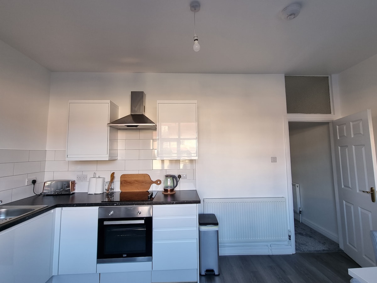 Zabavajte se z vso družino v tem elegantnem bivališču.,vsaka soba je brezhibno čista do najvišjega standarda.2 spalnici z 1 zakonsko posteljo v vsaki sobi in 1 enojno posteljo v vsaki sobi, čudovito prekrito s kavči v kuhinji,jedilnica z mizo , televizorjem , zelo visoko. Sprostite se in uživajte , zelo mirno in mirno na odlični lokaciji v bližini plaže in središča mesta Blackpool, 1 miljo. 500 metrov do promenade. Popoln kraj za sprostitev v Blackpoolu.