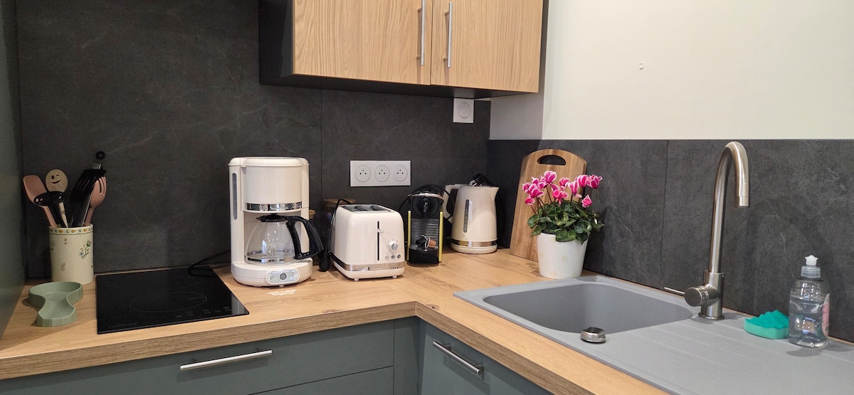 Sprostite se v popolnoma opremljenem vrtnem studiu s prefinjeno opremo. Tišina, ne spregledana. Dostop do bazena in masažne kadi neposredno iz garsonjere. Ta dostop je ekskluziven in ga ne delite z drugimi. Kavni aparat Percola in zasebna terasa. Na voljo so brisače in kopalni plašč. Masažna kad je na voljo in ogrevana skozi vse leto. Bazen je dostopen samo poleti (od začetka maja do konca septembra) Garsonjera je opremljena z reverzibilno klimatsko napravo.