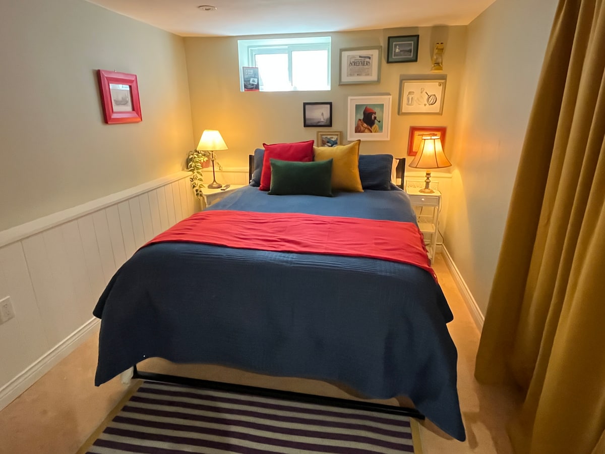 Naša klet z zasebnim vhodom s tipkovnico v West Endu, obdani z drevesi v Torontu, je idealna za turiste ali ljudi, ki prihajajo v mesto na delo. V začetku leta 2025 je bila popolnoma prenovljena s starinskim potovalnim vzdušjem iz petdesetih let prejšnjega stoletja, ki vam bo všeč. Popolnoma nova kopalnica, popolnoma ločena spalnica z zakonsko posteljo (vzmetnica ENDY), TV, pisalna miza ter dnevni prostor s kaminom in raztegljivim kavčem. Na voljo je tudi kuhinjska niša/pralnica. 3 minute hoje do podzemne železnice Jane. Strop 6'5" z 1 spodnjim nosilcem. Živimo v zgornjem nadstropju - enota je izolirana od hrupa.