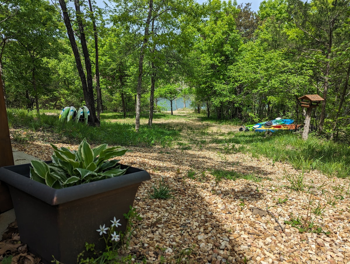 Pridite in uživajte v mirnem oddihu v našem mirnem zalivu na jezeru Table Rock. Sprostite se v naši hiši za goste z zasebno teraso, masažno kadjo, zunanjo prho, ognjiščem in plažo pred zadnjimi vrati. Uživajte v plavanju ali ribolovu v zalivu, sončenju na deski za veslanje ali kajaku ob sončnem zahodu. Vključene so deske za veslanje in kajaki! Dobrodošli, družinski čas, ki se sprošča na viseči mreži in poslušate prelivanje vode, peko na žaru na terasi ali hlajenje ob ognjišču (vključen je drva za kurjavo). Pomladite se v lepoti narave!!