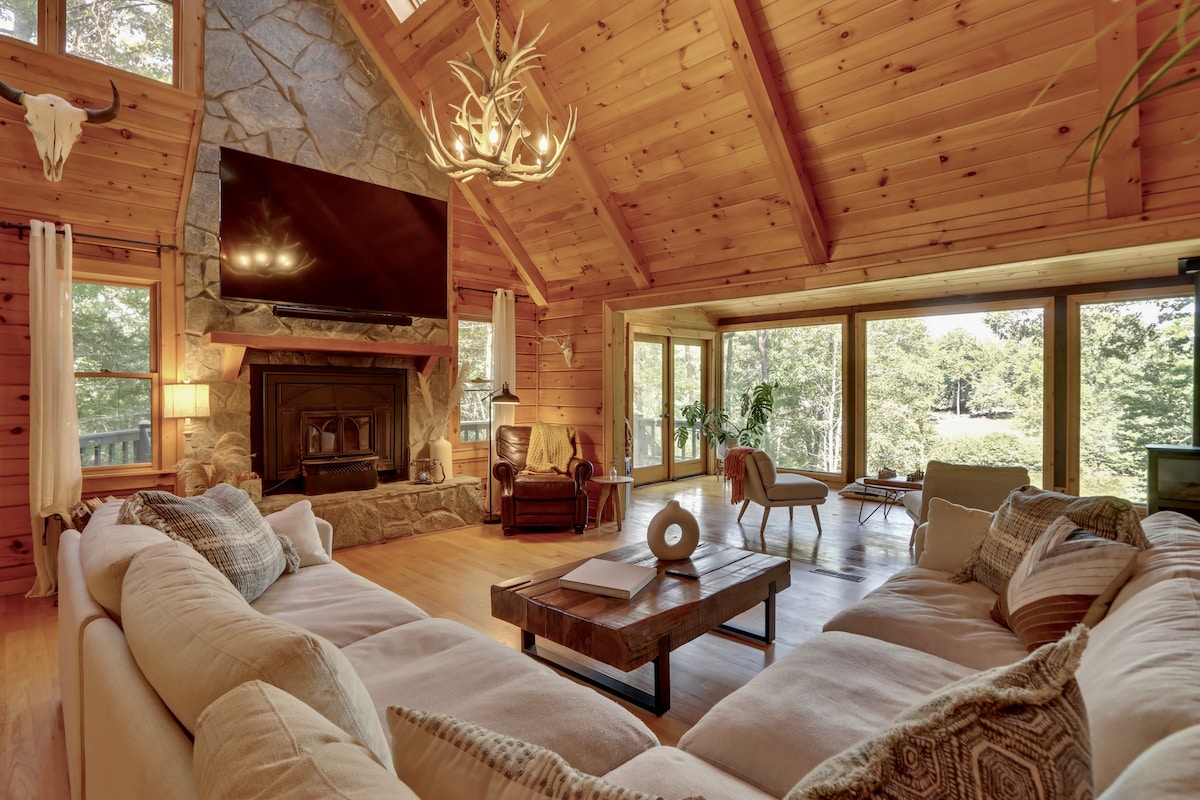 💰No nickel & diming — AirBnb & cleaning fees in nightly rate! 🏡 4-Bedroom Waterfront Log Cabin on Blue Ridge Lake 🏞️ Large Screened-In Porch: Cozy Gas fireplace, lots of seating, porch swing, dining area for 10 🔥 Cozy Firepit and Hot Tub 👩🏼🍳 Big Green Egg & Blackstone Grills 🏓 Fun for All Ages: ping pong, Xbox, board games+ 🚣🏻 Private dock w/ trampoline, diving board, kayaks, paddleboard,& more 😴 Plush Bedding & Luxurious Linens 🛜 Reliable High-Speed Internet 🐶 Pet-Friendly!
