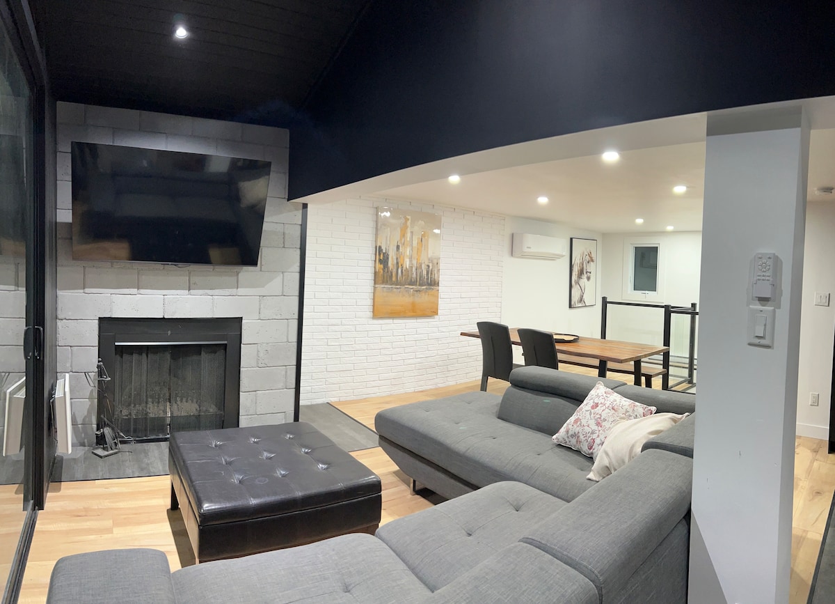 Planinski dom s površino 1100 čevljev. - 3 spalnice, - jacuzzi - Dostop do reke Lièvre, saj je to zemljišče skupno, obiskovalci ne morejo nastaniti ali pustiti svoje opreme na pomolu. - Na voljo so kanuji/kajaki, majhna kopalna plaža. - prostor za taborni ogenj (na voljo je les), - žar (poletna sezona) s propanom, - 4 km skupnih sprehajalnih poti, - Velika terasa in še marsikaj drugega. 1 ura od Ottawe. Upoštevajte, da po 22. uri ne bomo dopuščali hrupa in glasbe. CITQ: 295269