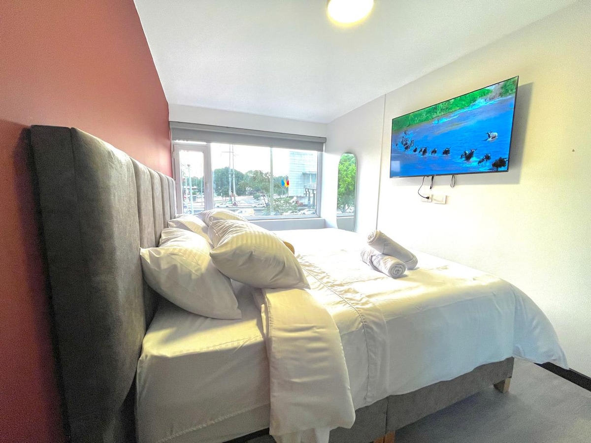 Immerse yourself in the warmth and brightness of our charming apartment, a space designed to provide you with an unforgettable stay. With a loft-style layout, this space offers everything you need for a comfortable and enjoyable stay. In addition to its coziness, the apartment is located just a few meters from prestigious hotels like the Hilton, JW Marriott, Four Seasons, right in the heart of Quinta Camacho and Zona G. Here, you’ll find a variety of restaurants, bars and cultural attractions.