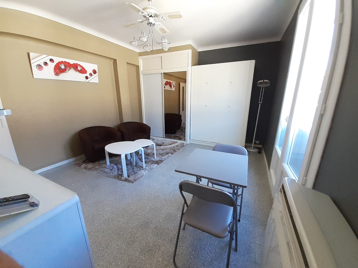 Studio de 19m2 se composant d'un espace nuit avec un lit confortable et une TV ,d'un espace repas avec un micro-ondes,d'une bouilloire,de la vaisselle ,un frigo,puis une douche à l'italienne ,wc.unventilateur. Parking gratuit devant la Résidence,Il n y a pas de fenêtre...une seule dans la salle de bain....mais une porte vitree que vous pouvez laisser ouverte l 'ete car elle donne sur le jardin. Draps,torchons et serviettes non fournis.Pas de plaque de cuisson mais un micro ondes.Pas de wifi