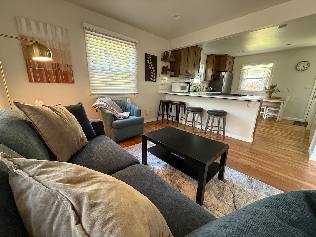 Sveža in zračna hiša za goste, ki se nahaja miljo od središča mesta Boise. Sprostite se v naši kadi s kremplji po dolgem dnevu raziskovanja bližnjega parka z belo vodo, vznožja, zelenega pasu ali pokrajine v središču mesta. Kuhajte v kuhinji ali pa se sprehodite do bližnjih restavracij za obroke. Popijte jutranjo kavo na terasi, medtem ko načrtujete naslednjo pustolovščino. Trdno boste spali v udobni kraljevski postelji. Upamo, da vam bo Boise všeč, vendar bo zatočišče težko zapustiti v studiu 26th Street.
