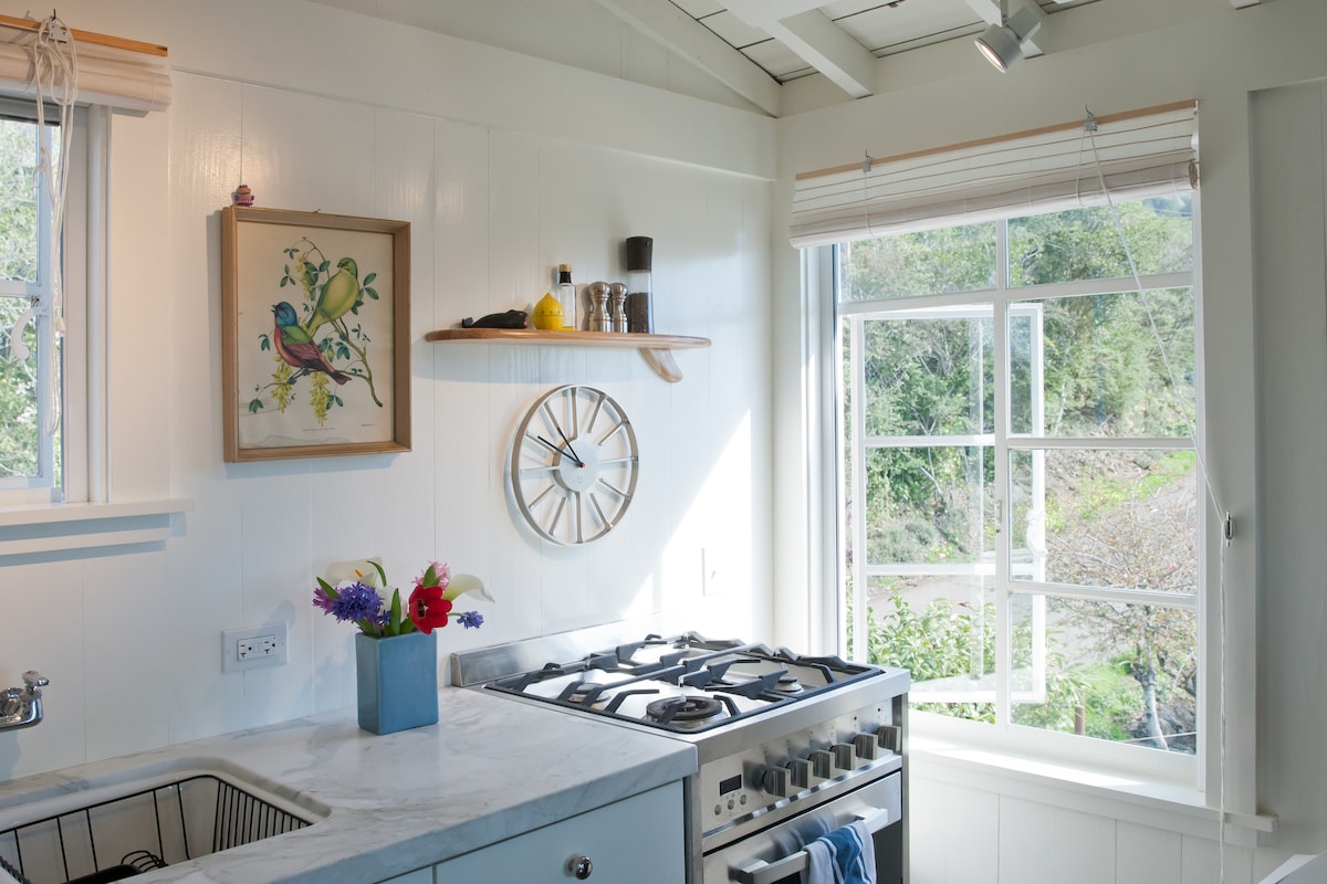Ta urejena garsonjera se nahaja na hribu v Stinson Beachu, le kratek sprehod do mesta in plaže. Polno zvoka oceana in v bližini številnih pohodniških poti na Mt. Tam, garsonjera ima popolnoma opremljeno kuhinjo in kopalnico ter neoviran panoramski razgled. 31-dnevna bivanja imajo 10% popusta in so oproščena 14-odstotne takse za kratkotrajni zakup. Majhni psi so dobrodošli, za daljša bivanja pa bodo upoštevani popusti na doplačilo za hišne ljubljenčke.