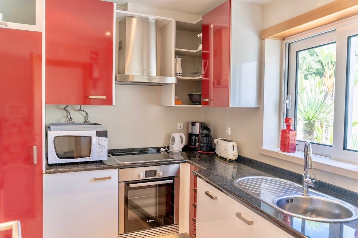 T2 apart in a private condominium; Bedroom with a king-size bed, en-suite bathroom; 1 twin bedrooms with shower rooms; 1 living rooms; Large terrace; 2 private pools; Kitchen is fully fitted; Parking in front of the house - 4 min - restaurants, supermarket, pharmacy, etc. - 6 minutes walk to the beach. - 7 min walk to the center of Olhos Dagua - 8 min walk to the local Best Deal car rental office. - 10 min - Pine Cliffs golf course. - 10 min drive to the center of Albufieira or Vilamoura Marina